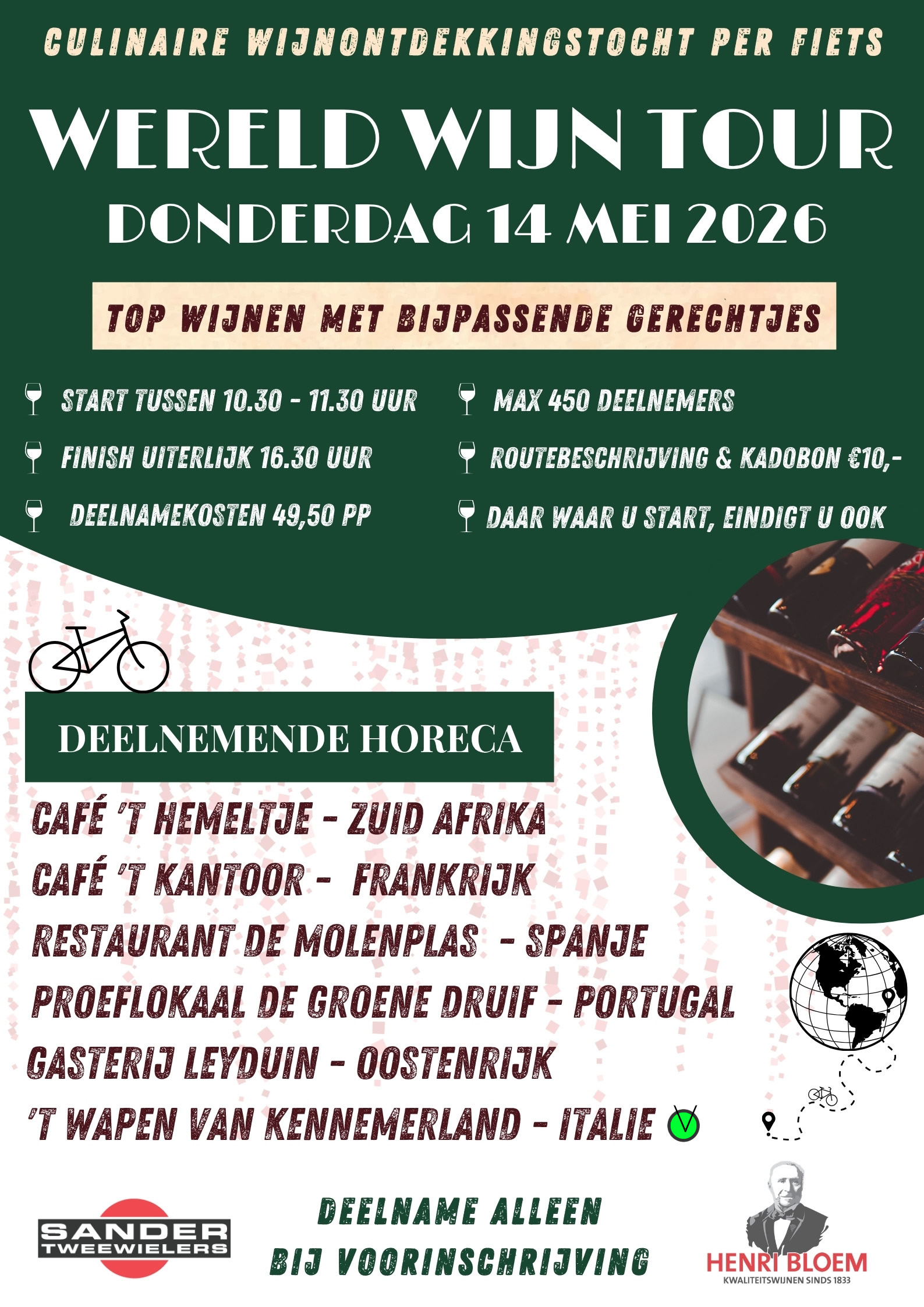 🍷Wereld Wijn Tour 2026 Op Hemelvaartsdag, donderdag 14 mei 🚴‍♂️